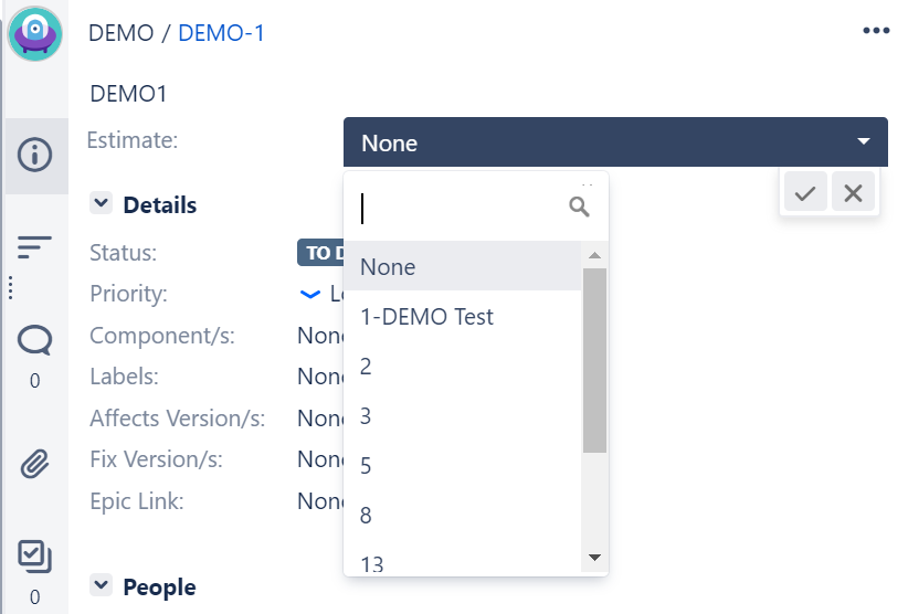 “Story Points for Jira” enables the Agile Team to better record and enter effort estimations and make sure that only valid Story Point values can be entered into a Story Point field. This is managed by converting any existing Numeric Story Point Field into a Single Select Field. You can define the available options in the same way as for any other Single Select Custom Field.