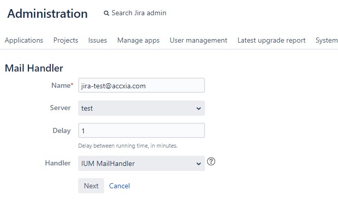 you only have to select "IUM MailHandler" under handler for the existing mail handler