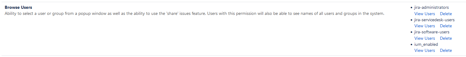 How can I enable mentioning of users in Jira Software and Jira Service Management in Comments/Boards/Tickets/Issues? (IUM4Jira)When using IUM you will realize that IUM users cannot mention other users in comments to your tickets anymore. To avoid that you have to add the IUM-enabled group to the "Browse Users" permission. Therefore you need to change the "Global Permissions" in Jira (Administration→ System → Global Permissions) and add the IUM-enabled group.