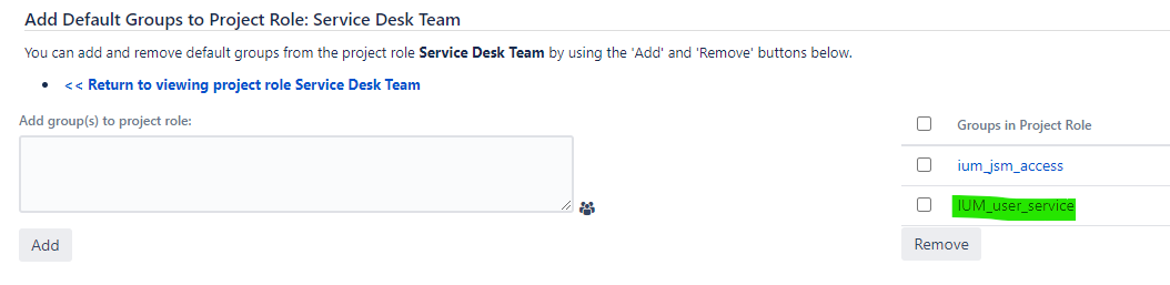 For example, if the Resolution User & Group Sync plugin is used, the IUM access group must be added to the exceptions
