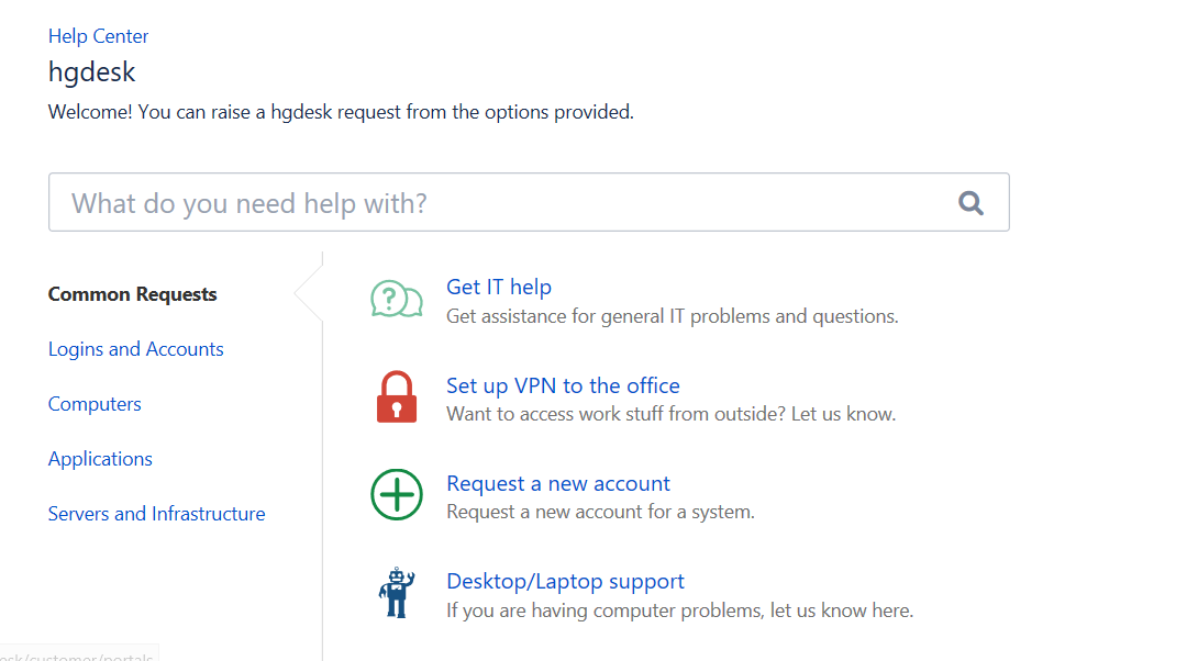 Users will be automatically logged in into the Service Desk Customer Portal. They can use the Knowledge DB or/and raise requests.