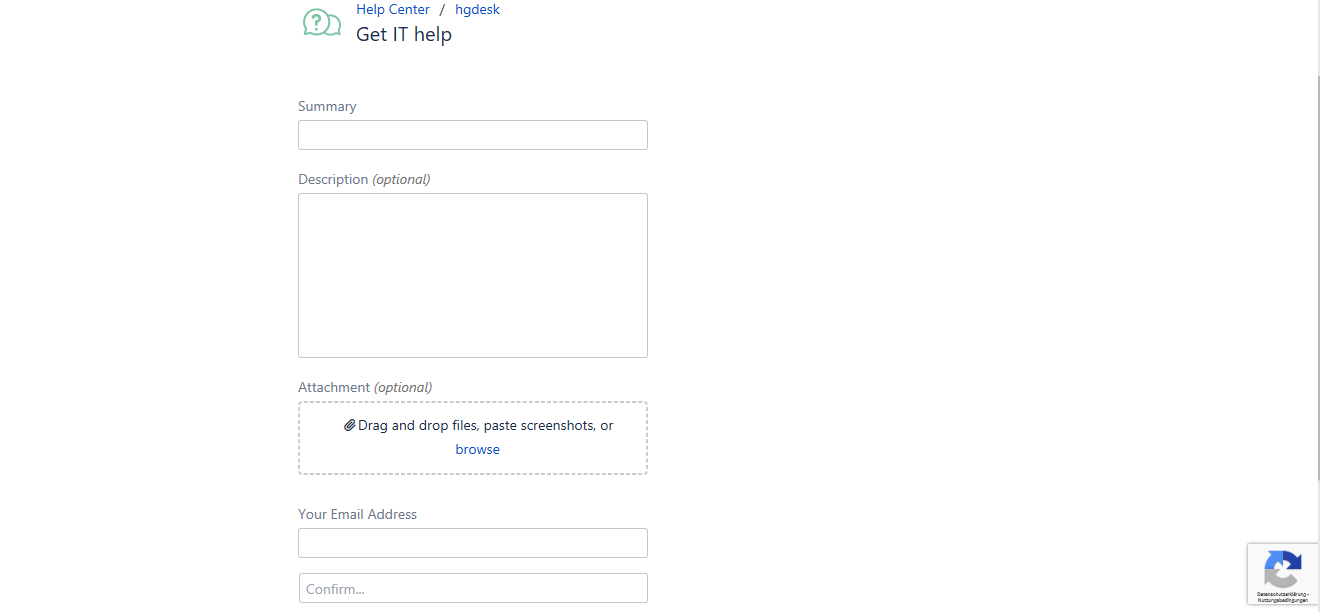 The create request fails when the google recaptcha is configured properly | To use the Google ReCaptcha, your Jira Service Desk Instance must be able to access the Url https://www.google.com/recaptcha/api/siteverify. If your server instance does not have internet access (e.g. you have to install AddOns via file upload instead of installing them from the marketplace) you can not use the Google ReCaptcha feature. |