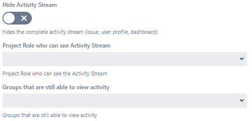Hides the entire activity stream. (issue, user profile, dashboard)