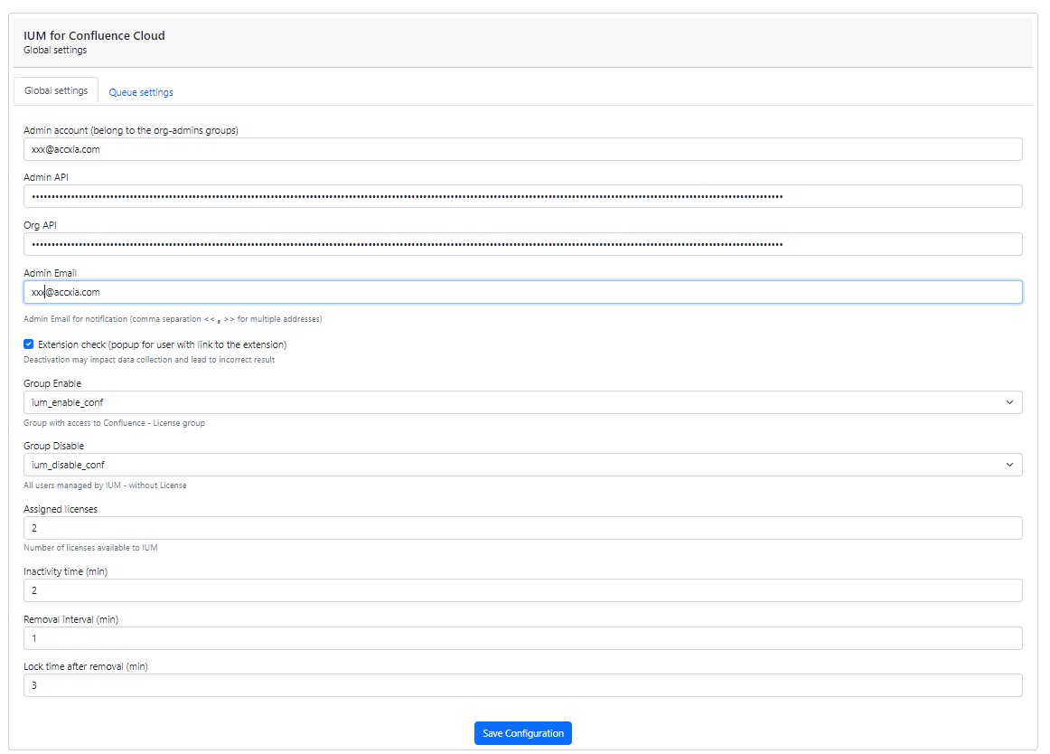 Here you can select how long the retry button on the queue page should remain locked after being clicked if no license is available.