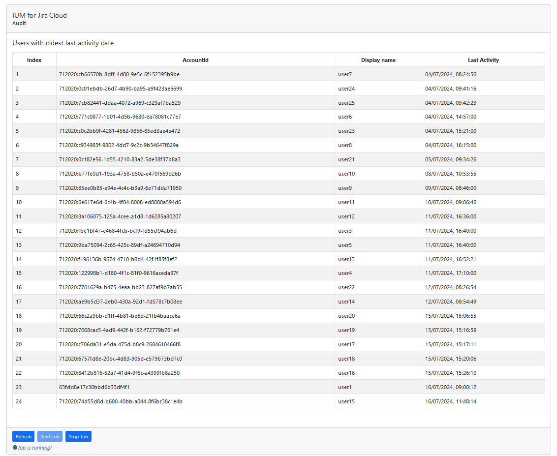 - List of the last activity of all IUM users. (Admins and Software users are filtered out here).